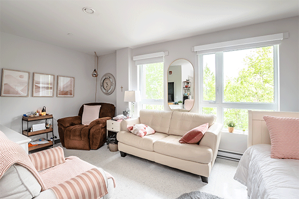 La résidence Au Cœur de Marie met tout en place pour assurer votre bien-être. Nos appartements offrent tout le confort voulu dans un environnement sécuritaire. Tous nos appartements possèdent de grandes fenêtres. Vous profiterez ainsi d’un logement parfaitement adapté à vos besoins, ensoleillé et lumineux.